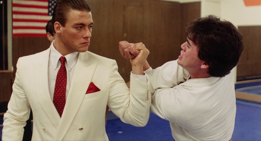 Around 1994, few action stars were bigger internationally than Jean-Claude Van Damme, mostly owing to the $100 million box office success of TIMECOP that year. As a result, his back catalog of films was widely available in brick-and-mortar video stores. On a whim, I grabbed a VHS copy of a 1986 movie called NO RETREAT, NO SURRENDER, where — as promised by the box art — he co-starred as the evil Russian villain kickboxer who, in the climactic fight, battles a bullied teenager trained by the ghost of Bruce Lee in a condemned house. Yes, seriously.