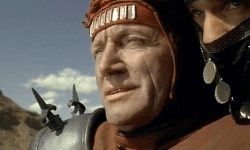 You are a filmmaker. Your funding just came through and you get to make your movie. Not only that, but you get to make your movie in the highly cinematic Utah regions of Monument Valley and Moab. However, it’s not enough to do a movie in Utah, you need some stars. Your quality screen presence comes in the form of veteran actors Lance Henriksen and Kris Kristofferson. The acting chops are nice, but you’re filming an action movie, so you need some quality fighters. Answering the bell are kickboxers Gary Daniels and Kathy Long. All this action and drama are nice, but you need some wacky costumes. You get the wacky costumes, plus some horses. Wait, why are people riding horses? Oh, it’s after the apocalypse. Why did the apocalypse happen? After the cyborgs came! And oh, by the way, the cyborgs need to extract human blood to stay alive, so they’re vampire cyborgs. These are the elements that kept Albert Pyun awake at night during the filming of KNIGHTS, released in 1993.