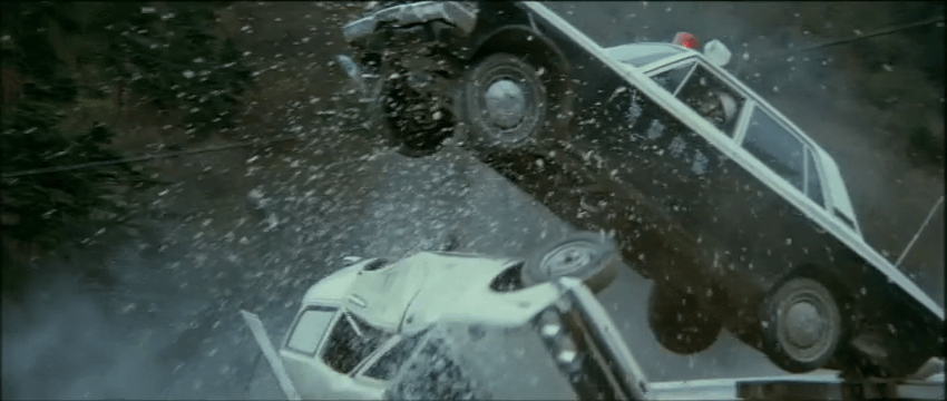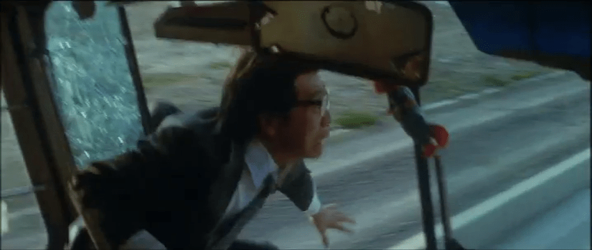 The action is a Toei-style demolition derby, and the results are smashing. Tsukagoshi’s choices in shot composition and viewing angles combined with Kanda’s artful editing make every action scene feel especially high-stakes, and they linger just long enough on the grisly aftermath of poor decisions to highlight the cause and effect. As an example, a cop decides to jump from an overpass onto the speeding bus but predictably whiffs on the landing, crushing his face and breaking both legs on the street below. There’s a requisite crash through a chicken coop that uses slow-motion on the backside of the collision to highlight the sudden cacophony of squawking and wing-flapping. There are police car crashes galore, Fumiko does some impressive high-speed weaving through city traffic, and more than a few folks splash into a watery landing after running out of road in pursuit. Thanks to Nakajima’s steady direction, the pace of the story beats, and the visual style, the entire film feels propulsive from the get-go, and it keeps that sense of momentum to the very end.