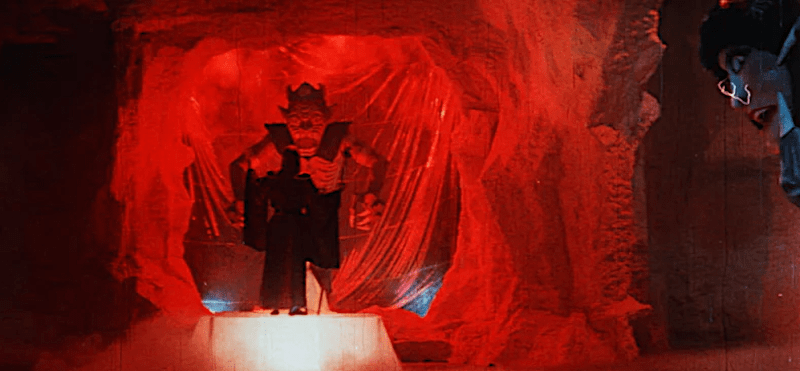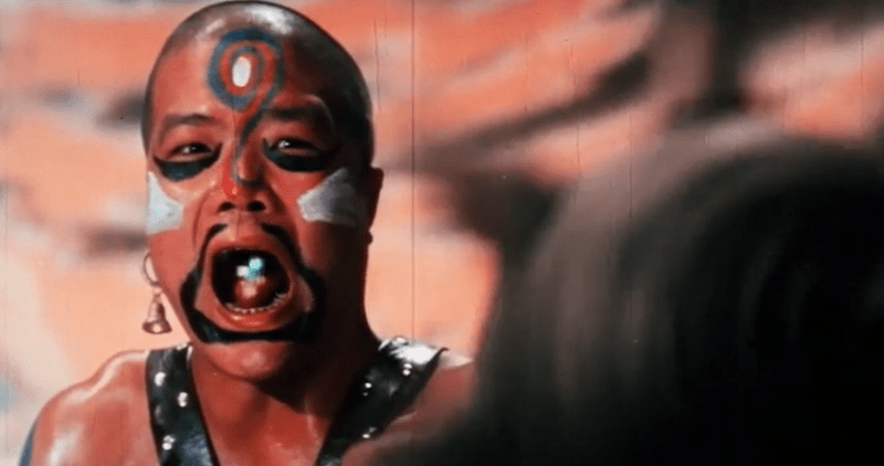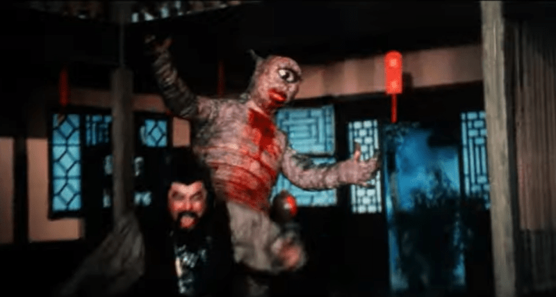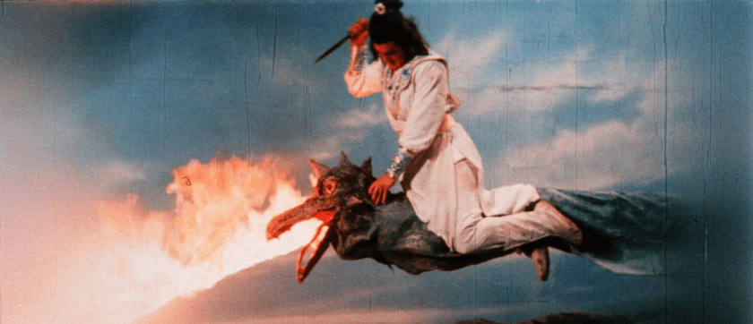 Working under the banner of the incredibly named production company, Lusty Electric Industries – whose only other contribution to cinema was the 1989 Hong Kong action film, BURNING AMBITION – director Hsin-Yi Chang serves up a vibrant spread of genre elements: monsters, martial arts, spooky lairs, pyrotechnics, shapeshifting, swordplay, glowing eyes, rooster puppetry, special effects, and light comedy. To cycle through even a few examples would spoil too much about the inspired insanity that makes the film such a joy to watch. It should be said that if you’re a fan of the action movie (and video game) trope wherein the protagonist combats a series of mini-bosses before a final showdown, you’ll enjoy the escalating creativity with which the filmmakers imbue their characters along the way. Even if the fight choreography isn’t quite on par with its genre peers of the day — it predates more polished wuxia action-fantasy films like ZU: WARRIORS FROM THE MAGIC MOUNTAIN and HOLY FLAME OF THE MARTIAL WORLD by a couple of years — THRILLING BLOODY SWORD’s aesthetic emphasis on colorful lighting and effects along with rough-and-ready creature design still makes the battles enjoyable.