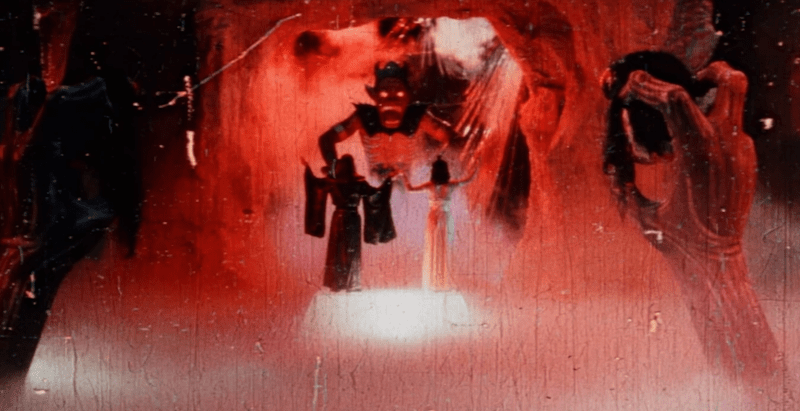 Inside the palace of the Ku Shien kingdom, royal onlookers are gathered for the birth of a new heir; the king paces as his wife, the queen, endures a painful labor. Outside, a meteor passes through the night sky before landing inside the mother’s body. On impact, the womb violently ejects itself to the floor and the queen instantly dies. Looking at the throbbing, watermelon-sized lump of flesh, the grief-stricken king erupts in anger and orders his advisor to banish it to the wilderness. A group of servants abide the order, wrap the bloody womb up in a basket with a protective a jade amulet, and send it downriver.