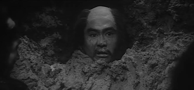 Years later, villagers are putting on a spectacular display of fireworks along the river to celebrate a festival dedicated solely to lifting the swamp curse. As he floats downriver on his boat with several councilors, Naoshige Nabeshima, now a lord, eyes a pretty woman named Yukiji (Kyoko Mikage) on the shoreline and sets his mind on forcibly taking her as a wife (regardless of her own feelings on the matter). When Yukiji’s father visits the lord soon after and learns of his intentions, he mentions that she’s engaged to Yuki Jonosuke (Kotaro Satomi). This fact, nor the Jonosuke family’s legacy as the “head of the treasury for generations,” does much to dissuade Nabeshima or his right-hand man, Shuzen Kuroiwa (Hiroshi Nawa) from their bullying posture. If Yukiji refuses the arrangement, her entire family will be beheaded by his military command, led by Ukon Shibayama (Bunta Sugawara).