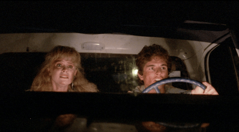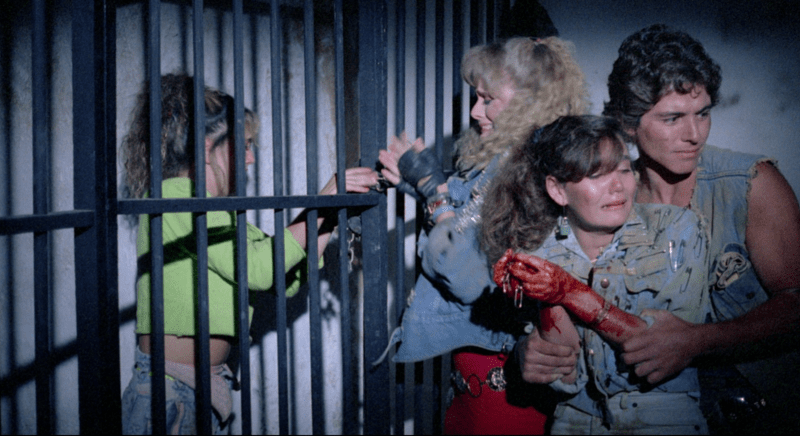 Fast forward to the present day in the town of San Ramon; local police chief Captain Lopez (Fernando Almada) and his gunsmith pal, Raul (Tony Bravo), are firing off semi-automatic weapons on a rooftop for fun, or possibly for science. Bubbly, big-haired Olivia (Edna Bolkan) drops by to tell her policeman dad that she and some girlfriends are camping in the woods for the night. Lopez warns her to keep the fires under control but otherwise seems to trust her judgement. Plus, he really wants to get back to shooting guns.