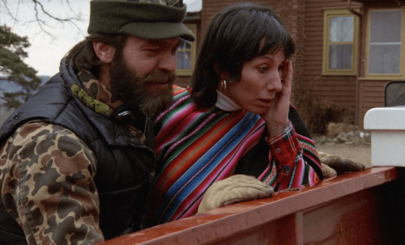 New-age expressionist painter, Cathy (Helen Benton), lives in the remote wilds of Wisconsin with her classical music-loving and bow-hunting beau, Gary (Terry Brown). While she toils away into the wee hours painting mystical scenes of vivid color from some deep place in her soul, he rises early to hunt deer, chop firewood, and feel nature upon his face. On the surface they seem to be opposite personalities, but they’re deep in the domestic bliss of a long-term relationship. One would think, then, that Helen would be well-accustomed to observing the grisly products of Gary’s hunting hobby, but on this particular morning, she is horrified by the sight of a dead deer in the back of his pickup truck.